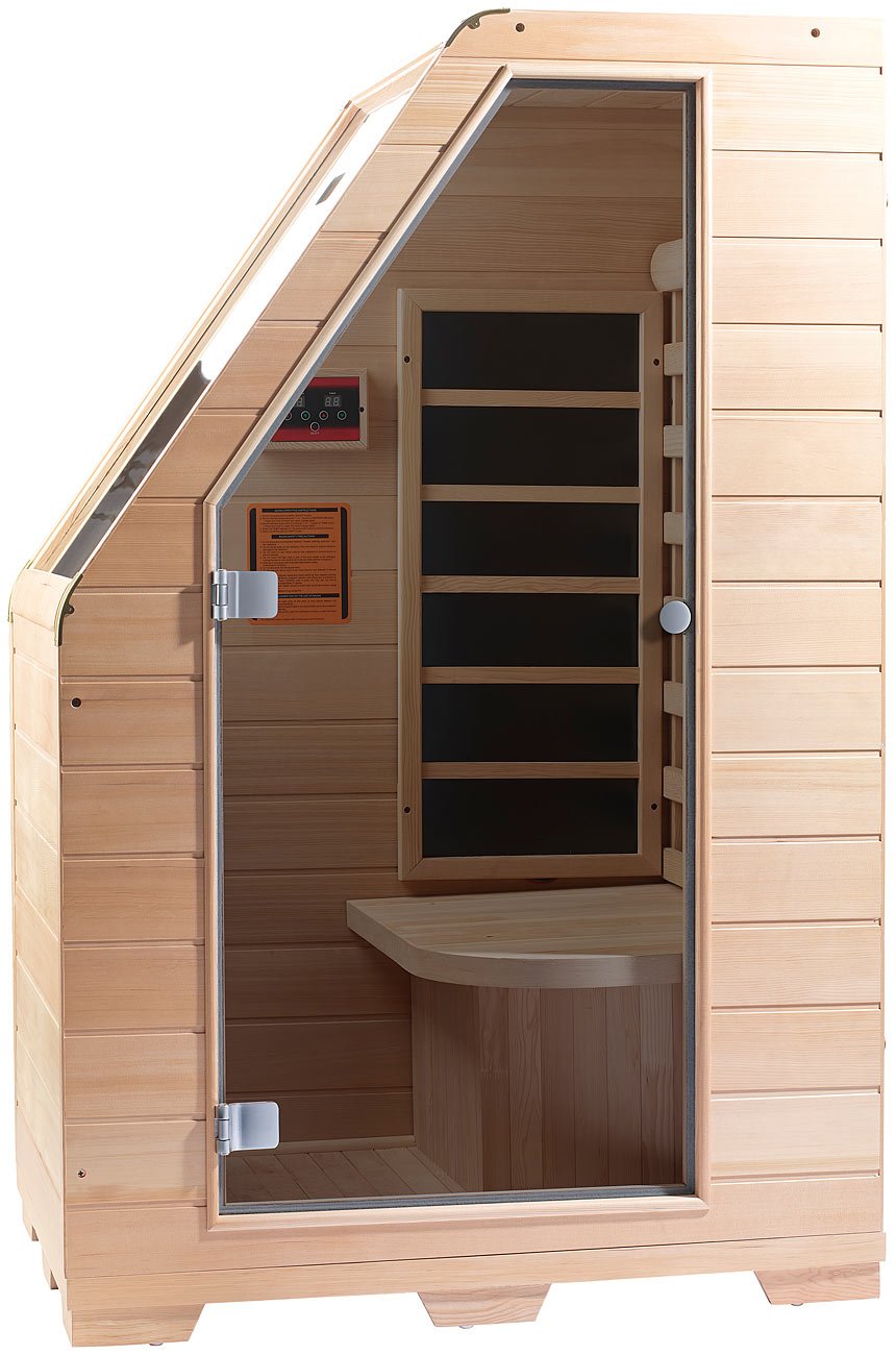 Infrarot sauna nobel 90 hemlock holz. Ein praktisches thermostat sorgt für durchgängig gleichbleibende temperatur. Kompakte holzsauna für 1 person. Ideal für menschen, die nach der arbeit kurz den kopf vom alltagsstress befreien wollen und dabei eine platzsparende. Gesundes schwitzen ganz bequem zu hause.