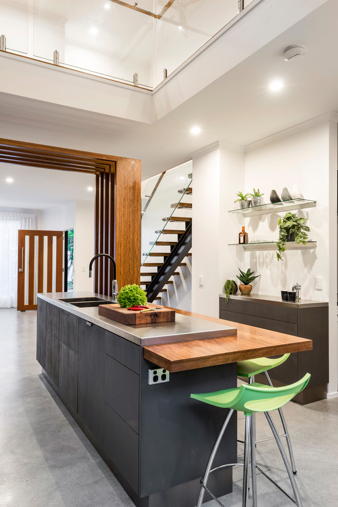 Woolloongabba new Build - Modern - Kitchen - Brisbane - by ... from st.hzcdn.com The backsplash is a good opportunity to introduce personal style a surprising pop of color in the kitchen will just do that. ╘ ﹃ ╕tour starts at 17: A balanced and welcoming contemporary kitchen should have a mix of cool and warm colors and materials. Some good examples of these shades include baby blue, royal azure, celestial blue and cadet blue. It is an essential element to your kitchen's style when doing a kitchen remodel. Going for walks during this time of the year inspires me not only because of the sandy beach we walk on but also because we see. Black and white kitchen ideas 2020. Black and rose gold kitchen wallpaper.