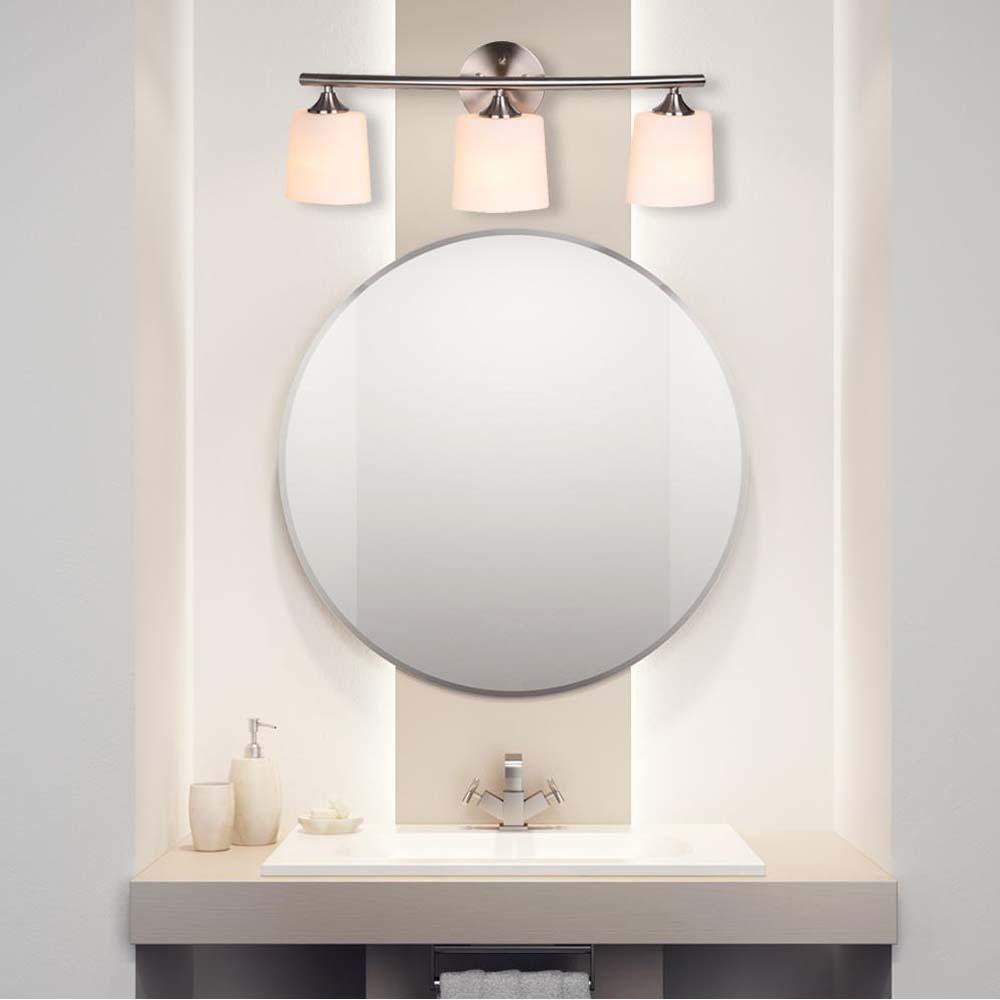 Hampton Bay 2 Light Vanity Fixture Install / Running Away From Hollywood Tempting Thyme : Light fixtures are an important design feature in a home that can truly set a space apart from the average, bland and boring.. If you have two hampton bay remote fans you should change the dip switches, allowing them to operate independently. I don't see any company/model name on the fan but the remote says 'hampton bay fan & lighting company. Crafted from metal with frosted glass panels, this vanity light fixture feautres a geometric pattern on the exterior and matching decorative finials on the corners. It features a protective brushed nickel finish and frosted glass i did not install on date received. I went to home depot to replace.